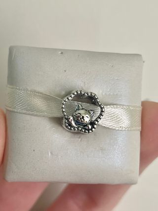 Charm a forma di gatto, un accessorio carino e delicato. La zampina si illumina al buio - Design dettagliato con un gatto raggomitolato. - Finitura in argento lucido.