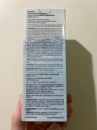 Crema solare Madagascar Centella Hyalu-Cica Water-Fit Sun Serum. - Protezione SPF50+ PA++++. - Formula leggera e idratante. - Contiene Centella Asiatica pura. - Formato da 50 ml / 1.69 fl.oz.
