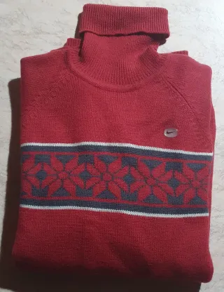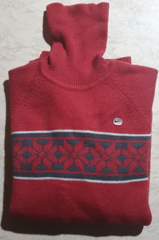Maglione da uomo Nike con collo alto e fantasia geometrica. - Fantasia a rombi e fiori. - Collo alto a costine. - Logo Nike discreto sul petto. - 100% lana Merino.