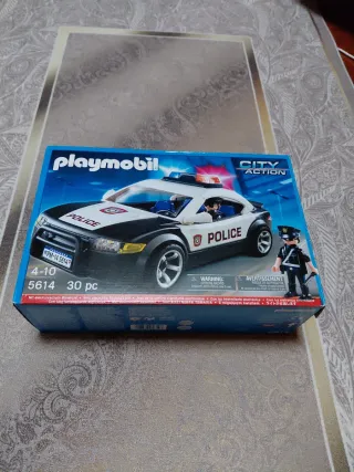 Gioco Playmobil 5614, età 4-10, City Action, veicolo auto della polizia, include 2 personaggi, con luci e suoni, manca pezzo davanti con targa come da ultime 2 foto