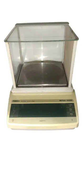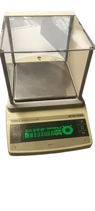Bilancia di precisione Mettler Toledo Questa è una bilancia di precisione da laboratorio METTLER TOLEDO PG802-S. Capacità massima di \(810\,\mathbf{g}\) e leggibilità di \(0,01\,\mathbf{g}\). Include funzioni integrate per il conteggio dei pezzi, la pesatura in percentuale, la pesatura di formule e la pesatura dinamica. È dotata di tecnologia di calibrazione completamente automatica (FACT) con peso interno. Struttura robusta e resistente agli agenti chimici. Dispone di un'interfaccia RS232C integrata per la raccolta dati. La protezione di PVC in alcune parti è danneggiata ma la bilancia è Perfetta