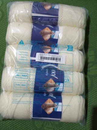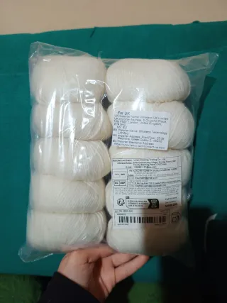 Lotto da 10 gomitoli di lana merino al 100% di colore bianco. - Filato morbido e caldo. - Ideale per lavori a maglia e uncinetto 2,5-4 mm - Ogni gomitolo pesa 50gr.