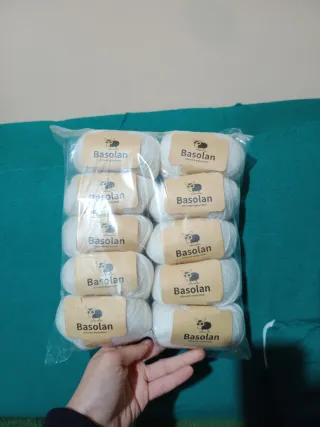Lotto di 10 gomitoli di lana bianca marca Basolan. - Lana 100% naturale. - Colore bianco. - Ideale per lavori a maglia e uncinetto 3-4mm