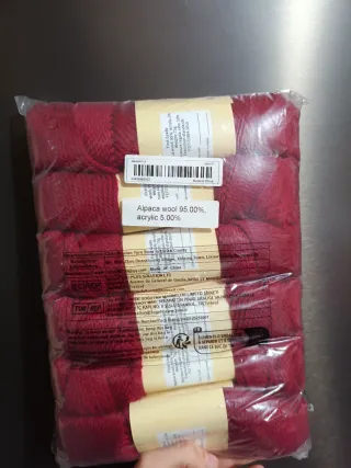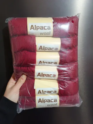 Confezione di gomitoli di lana alpaca color rosso bordeaux. - Materiale: lana alpaca 95% - Colore: rosso bordeaux - Quantità: 6 gomitoli - 4/6 mm