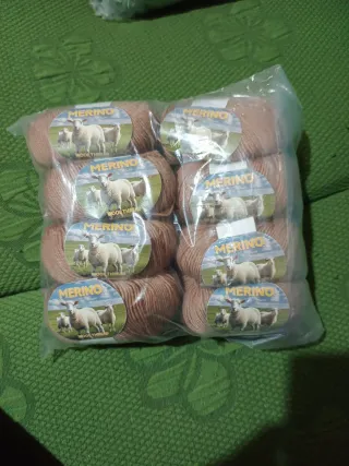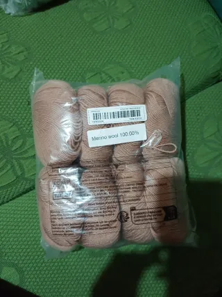 Confezione di gomitoli di lana merino. - Materiale: lana merino - Colore: marroncino tenue - Quantità: 8 gomitoli - tot 400gr