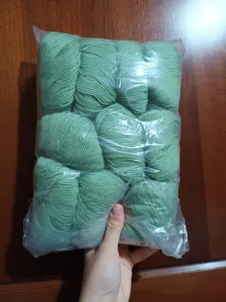 Confezione di 10 gomitoli di lana Merino - Colore verde pastello. - Materiale: Lana Merino 90%. - peso ogni gomitolo 50g, tot 500g.