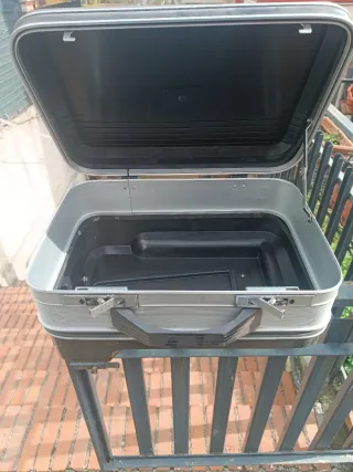 Valigetta rigida in plastica e metallo, ideale per conservare e trasportare attrezzi. - Colore grigio e nero. - Manico robusto per una presa comoda. - Chiusure a scatto per una maggiore sicurezza.