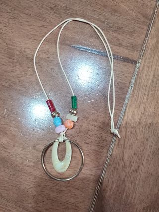 Collana con un ciondolo a forma di cerchio con un inserto in madreperla. - Perle colorate e distanziatori metallici. - Cordino regolabile.