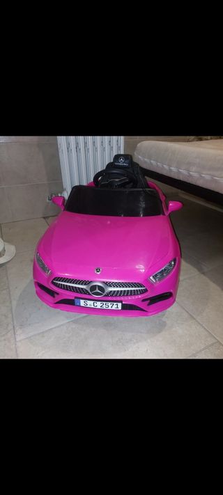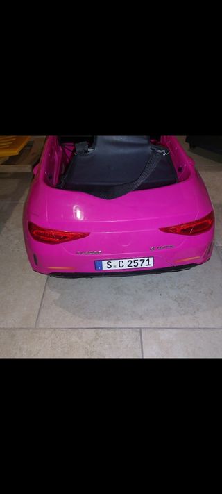 Macchina elettrica per bambini, replica della Mercedes. - Colore rosa vivace. - Volante con logo Mercedes-Benz. - Targa S C 2571.