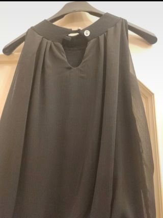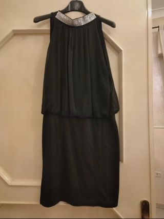Elegante vestito corto con dettagli luminosi sul collo. - Collo con strass. - Tessuto leggero e fluttuante.