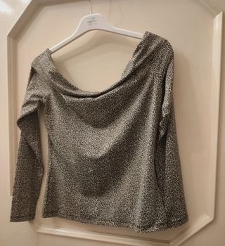 Maglietta da donna con una fantasia animalier. - Scollo ampio. - Maniche lunghe.