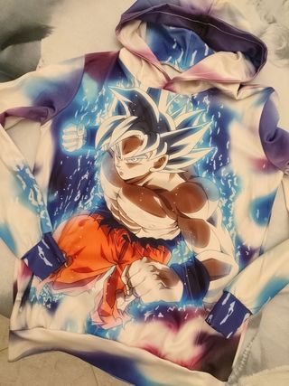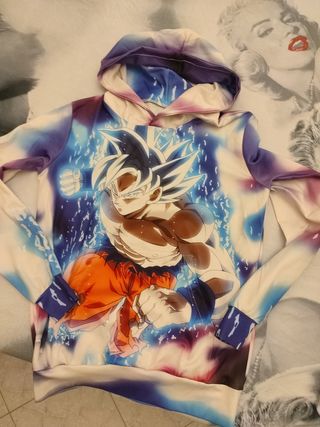 Felpa con stampa di Goku in Ultra Istinto, personaggio di Dragon Ball. - Design a sublimazione. - Maniche lunghe. - Cappuccio. - Polsini e fondo a costine.