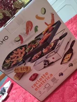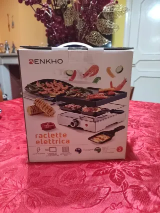 Raclette elettrica marca ENKHO, ideale per grigliate e raclette. - Piastra grill. - 4 piastre per raclette. - Potenza 750W.