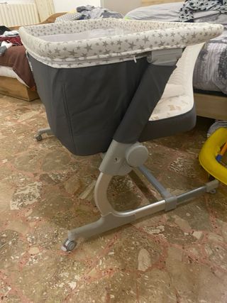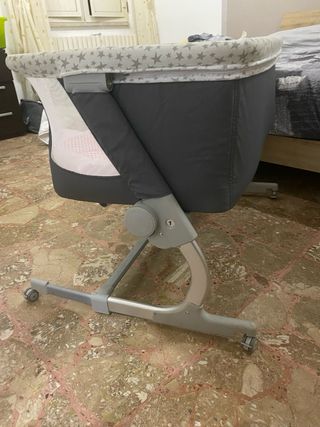 Culletta Next to Me Jane, ideale per i primi mesi del neonato. - Struttura in metallo e tessuto. - Design moderno con stelle grigie sul bordo. - Ruote per facilitare lo spostamento.