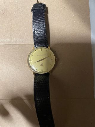 Elegante orologio da polso Smith & Smoocer, un pezzo da collezione. - Quadrante color oro. - Cinturino in pelle nera effetto lucertola. - Design classico e raffinato.