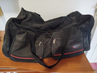 Borsa da viaggio grigia con dettagli rossi