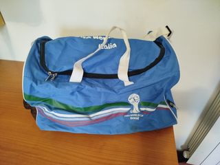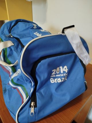 Zaino sportivo con design ispirato alla Coppa del Mondo FIFA Brasile 2014. - Colore blu vivace. - Manici bianchi. - Logo FIFA World Cup Brasil.