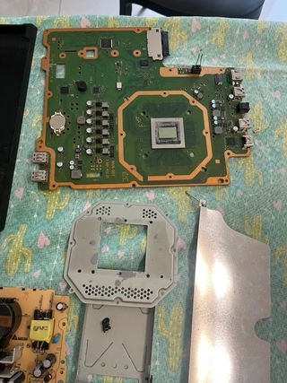 Componenti di ricambio per Playstation 4. - Ventola - Scheda di alimentazione( Scocca presente con anche piastra in metallo superiore smontata per comodità) - Scheda madre - Viti e staffe metalliche abbinate e pronte per il fissaggio -Scocche -Dissipatore ventola Vendo come pezzi per manutenzione a causa di malfunzionamento, si accende e si spegne subito