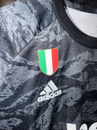 Maglia da calcio della Juventus, stagione 2019-20. - Design a fantasia. - Logo Adidas e stemma Juventus. - Sponsor Jeep.