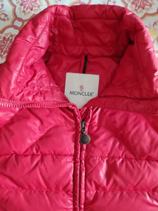 Giacca imbottita Moncler in un vivace colore rosso. - Tessuto lucido. - Collo alto. - Chiusura con zip. - Dettaglio logo sul cursore della zip.
