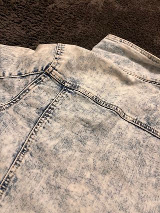 Giacca in denim con effetto stone washed e bottoni a contrasto - Taglia: S / 36 - A maniche lunghe. - lunghezza termina al punto vita - Chiusura con bottoni.