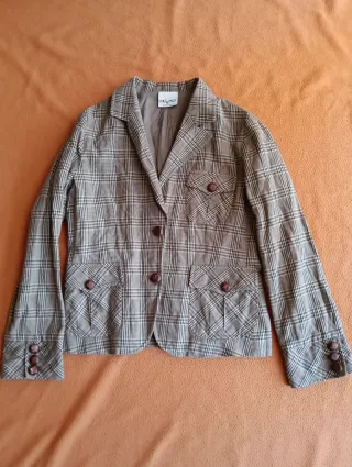 Elegante blazer in lana con un classico motivo a quadri. Chiusura con due bottoni frontali. Tre tasche applicate sul davanti. Per aprire i polsini sono stati applicati tre bottoni. Piccolo spacco posteriore
