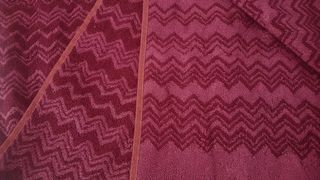 Asciugamano Missoni in cotone velour con un elegante motivo a zig-zag. In rilievo effetto 3d, vintage, anno di produzione 2016. COLORE BORDEAUX COLOR BURDEOS - Misure: 70x115 cm - Modello: REX 56T