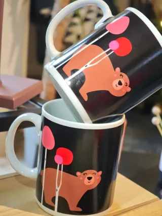 Set di tazze magiche che cambiano colore quando viene versata una bevanda calda. Il design presenta un simpatico orsetto. - Cambiano colore con il calore. - Design con orsetto e palloncini. - Ideali per bevande calde.