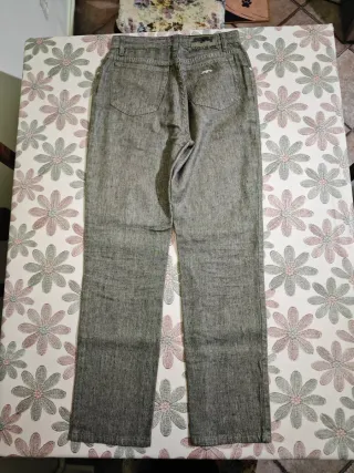 Pantaloni dal taglio jeans realizzati in cotone e lino. - Tessuto misto cotone e lino. - Design classico a cinque tasche. - Chiusura con zip e bottone.