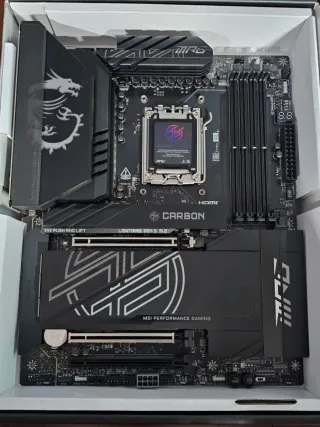 Scheda madre MSI MPG X870E CARBON WIFI. - Supporto per processori AMD RYZEN serie 9000. - Connettività Wi-Fi 7. - Supporto PCIe 5.0 per schede grafiche e NVMe. - Supporto DDR5. - Overclocking supportato.