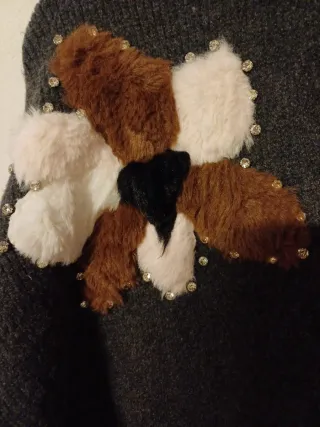 Maglia con fantasia di pailletts e ecopelliccia