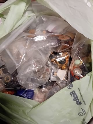 Lotto di bottoni assortiti.una busta piena - Bottoni di varie forme e dimensioni. - Dettagli dorati e finiture multicolore.