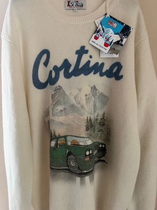 Maglione St. Barth con stampa Cortina e un'auto d'epoca. - Stampa frontale con montagne e auto. - Design girocollo. - Maniche lunghe.
