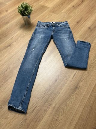 Jeans Jack & Jones in denim blu, modello semplice e facile da abbinare. Ideali per uso quotidiano e outfit casual. 📏 Taglia 44 📐 Lunghezza 101 cm – Vita 80 cm – Coscia 34 cm 🧵 Denim in cotone Condizioni ottime, praticamente nuovi, senza difetti. Spedizione disponibile 🚀