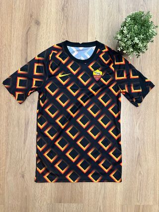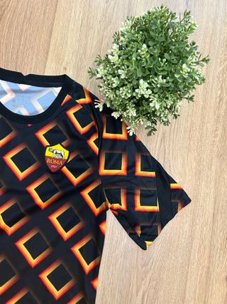 Maglia AS Roma originale Nike con grafica geometrica nera e dettagli giallo/rosso. Tessuto tecnico leggero e traspirante, perfetta per sport o look street. 📏 Taglia M 🧵 Tessuto tecnico Condizioni ottime, nessun difetto. Spedizione disponibile 🚀