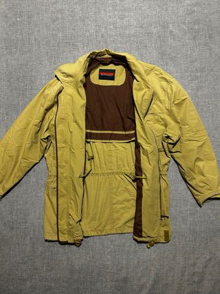 Giacca Bongardi di colore senape, taglia L. In ottime condizioni. Made in germania dell’ovest, quindi vintage di assoluto valore storico. - Chiusura con bottoni. - Tasche frontali. - Coulisse in vita.