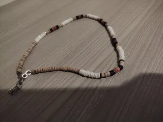 Braccialetto perline beige e argento nuovo unisex
