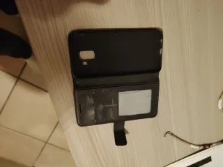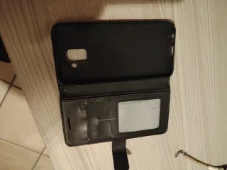 Custodia a libro per smartphone, colore nero. - Design elegante e funzionale. - Protegge il dispositivo da graffi e urti. - Tasche interne per carte o contanti. - Finestra trasparente per visualizzare notifiche o foto.