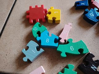 Puzzle in legno con lettere e numeri