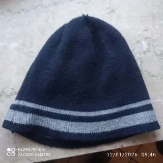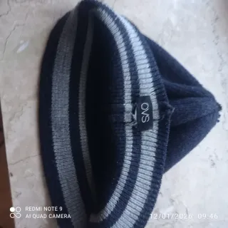 Cappello blu e grigio a righe