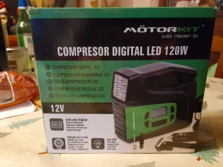 Compressore digitale portatile con display LED. - Potenza 120W. - Alimentazione 12V. - Funzione torcia LED integrata. - Gonfiaggio rapido in 5 minuti - anche x palloni e giochi gonfiabili Nella sua scatola mai tolto mai usato