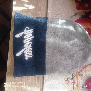 Cappellino con scritta hopeless ricamata. - Parte superiore grigia in maglia. - Fascia inferiore blu scuro. - Scritta hopeless bianca in corsivo.