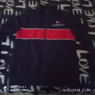 Giacca tuta con un design a blocchi di colore distintivo. Presenta una combinazione di blu scuro e una banda rossa centrale. - Logo sul petto. - Zip frontale.