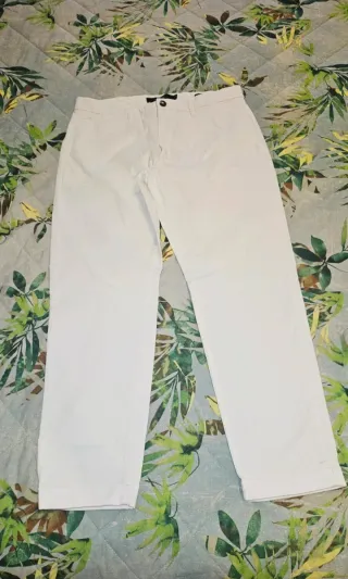 Pantaloni da uomo in colore bianco. - Vestibilità comoda. - Tessuto resistente. - Taglia 50,misure precise in foto - Tasche sul retro con bottoni - Regular fit