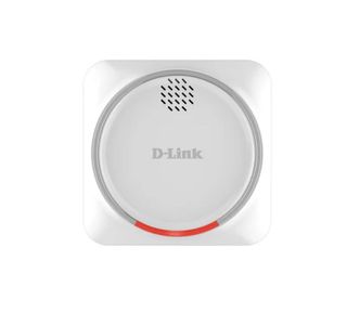 Sirena/allarme del marchio D-Link, modello DCH-Z510. Dispositivo compatto con un design moderno. Design quadrato con dettagli in grigio e rosso. Griglia superiore per altoparlante.
