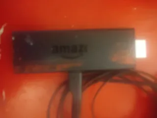 Dispositivo streaming Amazon Fire TV Stick con telecomando. Include adattatore di corrente, cavo di connessione e telecomando.