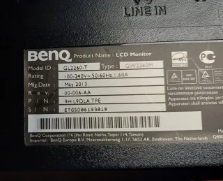 Monitor BenQ con finitura nera. - Schermo da 21.5 pollici. - Tecnologia LED. - Risoluzione Full HD. Ingressi VGA e DVI Senza cavi, solo monitor