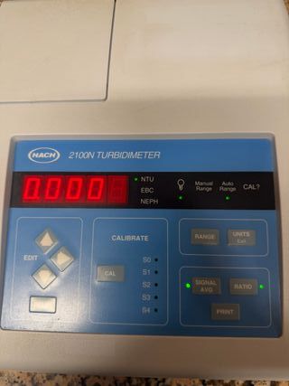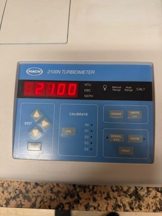 Turbidimetro HACH 2100N. Prezzo negoziabile, manca il coperchio posteriore, non influisce sul funzionamento. Display digitale. Pulsanti di controllo per calibrazione e configurazione.