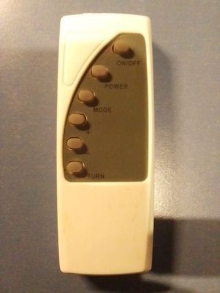 Telecomando con pulsanti per ON/OFF, POWER e MODE. Design ergonomico. Pulsanti di controllo. Colore bianco.