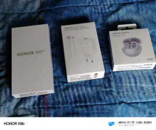 Smartphone Honor 400 nuovo, colore bianco, completo di tutti gli accessori originali. - Caricabatterie SuperCharge 66W - Auricolari Honor Choice Earbuds Clip